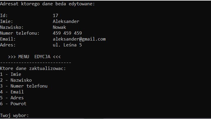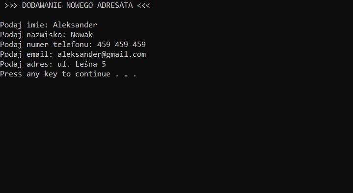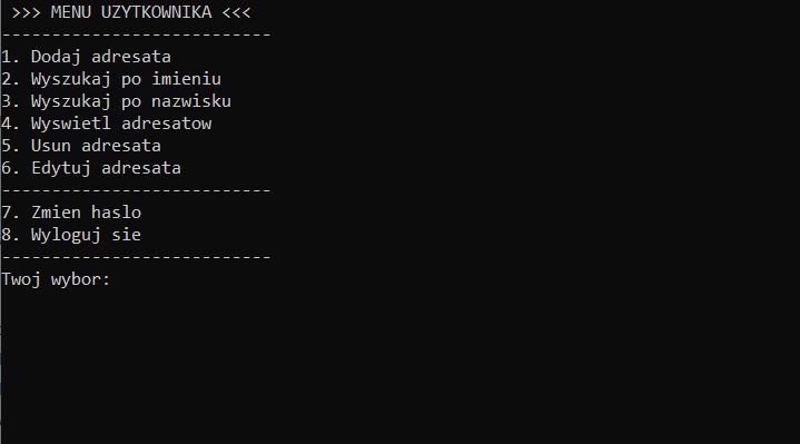 - Dane użytkowników oraz adresaci przechowywane w pliku tekstowym