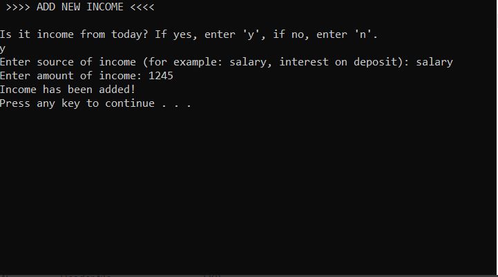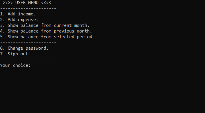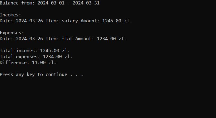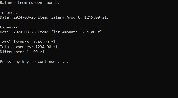 - Przeglądanie bilansu przychodów i wydatków z obecnego miesiąca, z poprzedniego miesiąca oraz wybranego przedziału czasowego